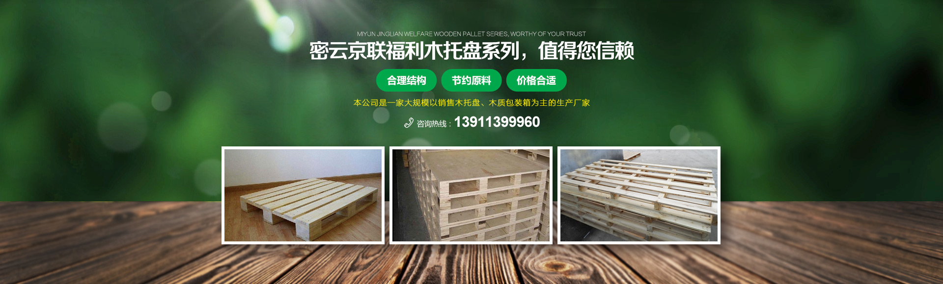 北京京聯(lián)國順木制品有限公司 (原北京市密云縣京聯(lián)福利木制品廠)成立于1993年,位于北京市密云縣西田各莊鎮(zhèn)蒼頭村,占地約5000平米。我公司工廠是一家大規(guī)模以銷售木托盤為主的生產(chǎn)廠家。本工廠是一家直接采購原木,按客戶要求生產(chǎn)規(guī)格尺寸的托盤,我公司工廠位于河北省承德市有著木材加工點(diǎn),可以做到,從山上的木頭下山到客戶手中的托盤都是一手貨,減少了中間商的費(fèi)用,所以我公司售出的產(chǎn)品對(duì)北京這個(gè)龐大的市場來說在同樣的規(guī)格尺寸的托盤來說價(jià)格比較占優(yōu)勢(shì)。